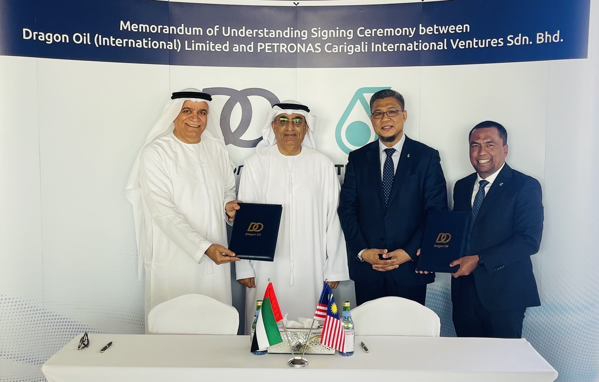 The MoU was signed by PETRONAS Senior General Manager of Strategy and Commercial, Azahari Mohd Shuid, and Dragon Oil Chief Growth Officer, Fareed Abdulla Al Hashmi. The signing ceremony was witnessed by PETRONAS Executive Vice President & Chief Executive Officer Upstream, Mohd Jukris Abdul Wahab, and Dragon Oil Chief Executive Officer Abdulkarim Ahmed AlMaazmi.