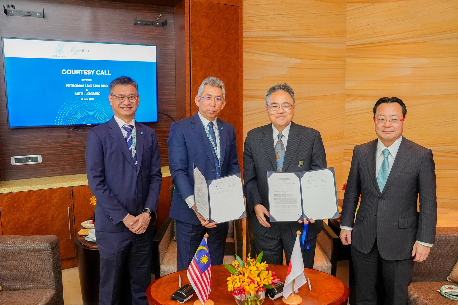 KUALA LUMPUR, 23 June 2025 – PETRONAS LNG Sdn. Bhd. (PLSB), a subsidiary of Petroliam Nasional Berhad (PETRONAS) and Japan Organization for Metals and Energy Security (JOGMEC) signed a Memorandum of Cooperation (MoC) to expand the collaboration framework in the liquefied natural gas (LNG) sector, through a strategic LNG arrangement.