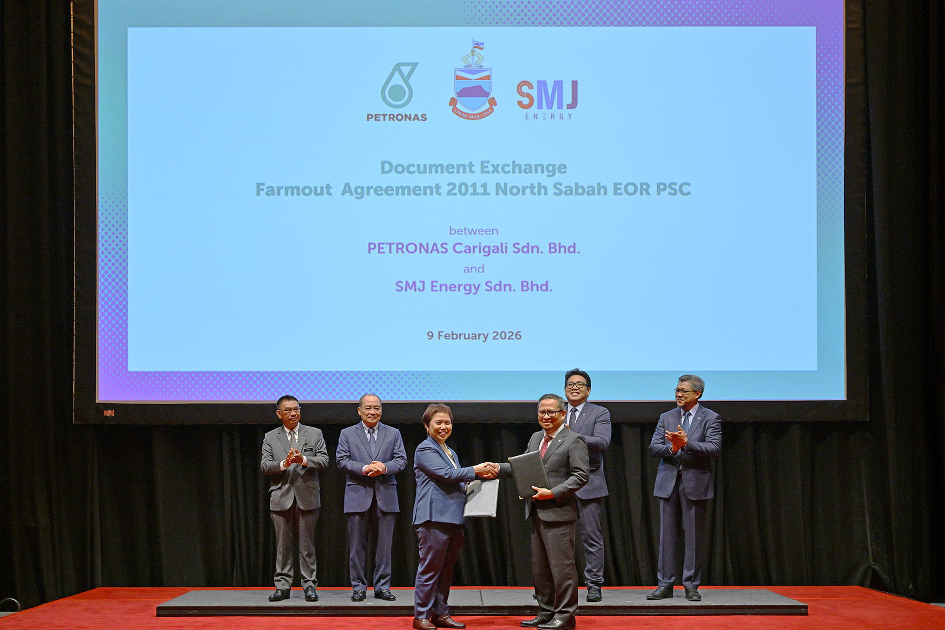 Kuala Lumpur, 9 February 2026–PETRONAS Carigali Sdn. Bhd. (PETRONAS Carigali), a wholly-owned subsidiary of PETRONAS, has signed a Farm Out Agreement (FOA) with SMJ Energy Sdn. Bhd. (SMJE), a company wholly-owned by the Sabah State Government for the assignment and transfer of PCSB’s twenty per cent (20%) non-operating participating interest to SMJE in the 2011 North Sabah Enhanced Oil Recovery Production Sharing Contract (2011 NSEOR PSC).