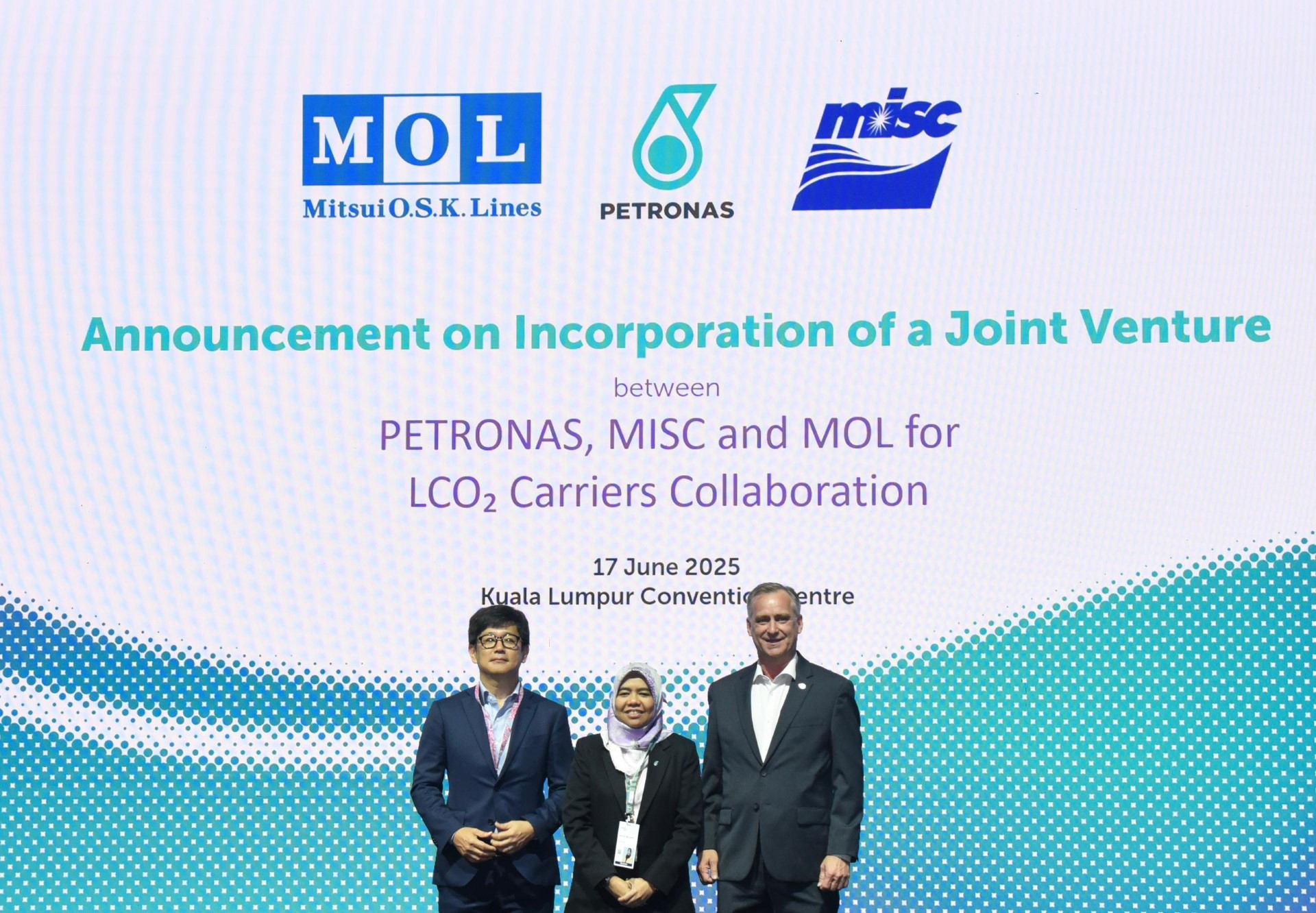 Kuala Lumpur, 17 June 2025 – PETRONAS CCS Ventures Sdn. Bhd. (PCCSV), MISC Berhad (MISC), and Mitsui O.S.K. Lines, Ltd., (MOL) today announced the incorporation of a strategic joint venture (JV), Jules Nautica Sdn. Bhd. This JV will lead the development and act as the ultimate owner of Liquefied Carbon Dioxide (LCO₂) carriers, which are critical for transporting LCO₂ to designated storage sites as part of advancing carbon capture and storage (CCS) solutions.
