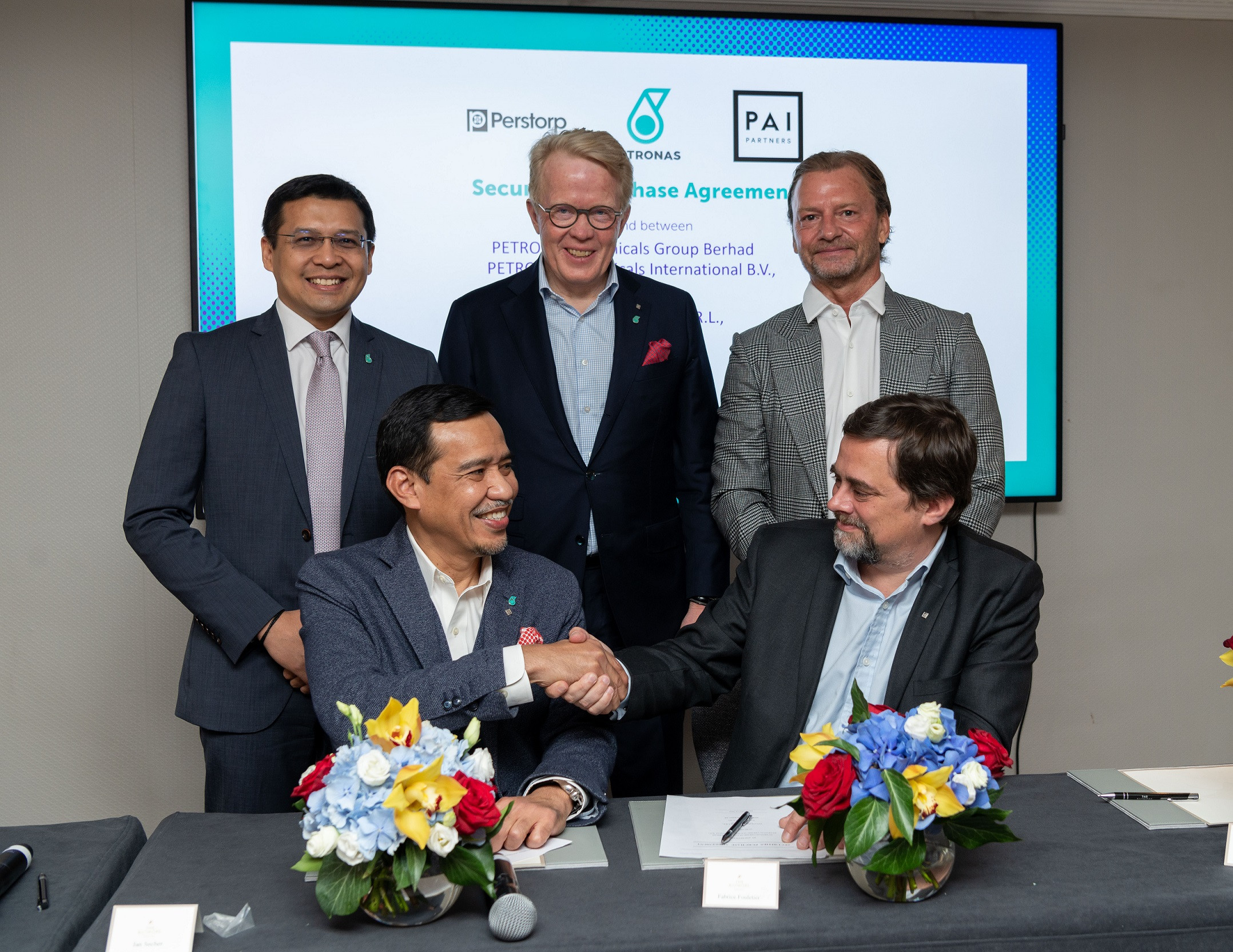 Kuala Lumpur, 17 Mei – PETRONAS Chemicals Group Berhad (PCG) telah menandatangani Perjanjian Pembelian Sekuriti pada 14 Mei 2022 bagi mengambilalih keseluruhan kepentingan ekuiti dalam Perstorp Holding AB, sebuah syarikat bahan kimia khusus global yang didorong oleh kelestarian, dengan harga EUR1,538.0 juta, bersamaan dengan RM7,018.7 juta. Perjanjian tersebut ditandatangani dengan Financière Forêt S.à.r.l, sebuah syarikat di bawah PAI Partners, sebuah firma ekuiti swasta Eropah. Pengambilalihan tersebut menilaikan Perstorp Group pada nilai perusahaan sebanyak EUR2,300.0 juta, yang bersamaan dengan RM10,496.1 juta.