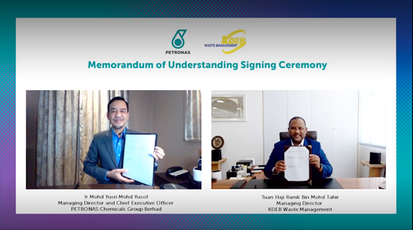Kuala Lumpur, 18 March – PETRONAS Chemicals Group Berhad (PCG) signed a Memorandum of Understanding (MoU) with KDEB Waste Management (KDEBWM) and One Biosys Sdn Bhd for the supply of plastic waste from landfills and evaluation of potential collaboration to build waste segregation facilities in Malaysia.