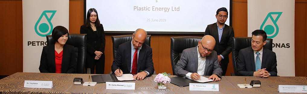 Kuala Lumpur, 26 June 2019 – PETRONAS Chemicals Group (PCG), the petrochemical arm of PETRONAS, yesterday signed a Memorandum of Understanding (MoU) with PLASTIC ENERGY Ltd, a chemical recycling company, to collaborate in addressing plastic waste that cannot be recycled by conventional means in Malaysia. The strategic collaboration marks the first step towards a circular economy which maximises the plastics value chain