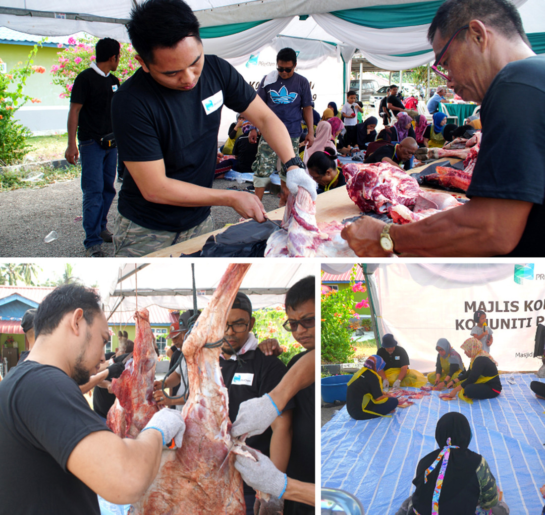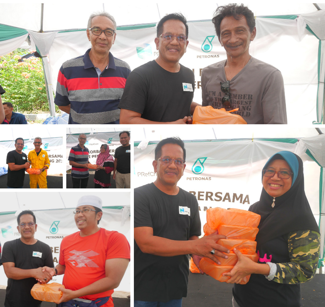 The half day event saw some 300 congregants gathered at the event where a total of 40 cattle donated by PETRONAS and PRefChem staff were sacrificed and the meat was then distributed to the congregants as well as the underprivileged within Pengerang and Kota Tinggi district.