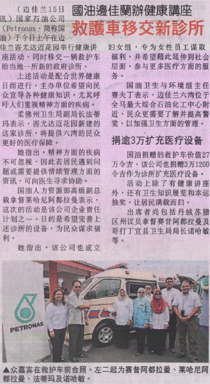Ambulance Handed Over To New Clinic16 · Oct · 2016 - Sin Chew Daily
