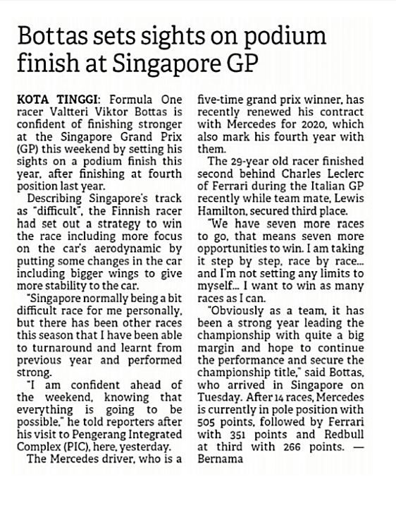 Bottas Sets Sights on Podium Finish at Singapore GP