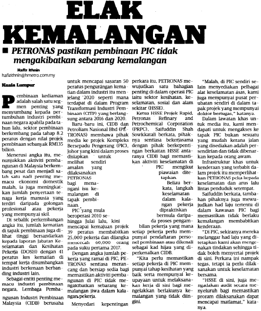 CIDB Ambil Langkah Proaktif Dalam Usaha Wujudkan Tahap Keselamatan Tinggi di Tempat Kerja