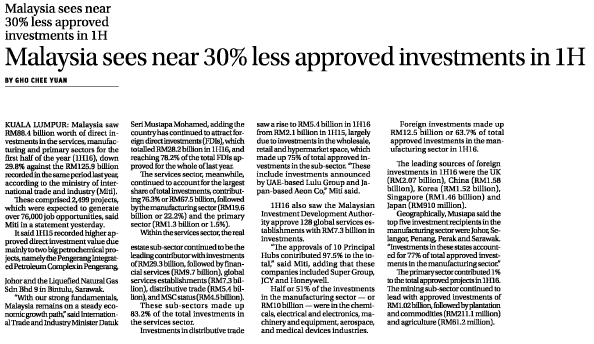 Malaysia Sees Near 30pc Less Approved Investments in 1H23 · Sep · 2016 - The Edge Financial Daily