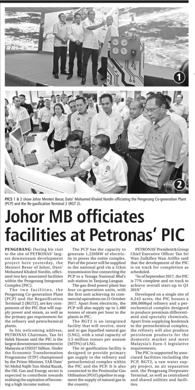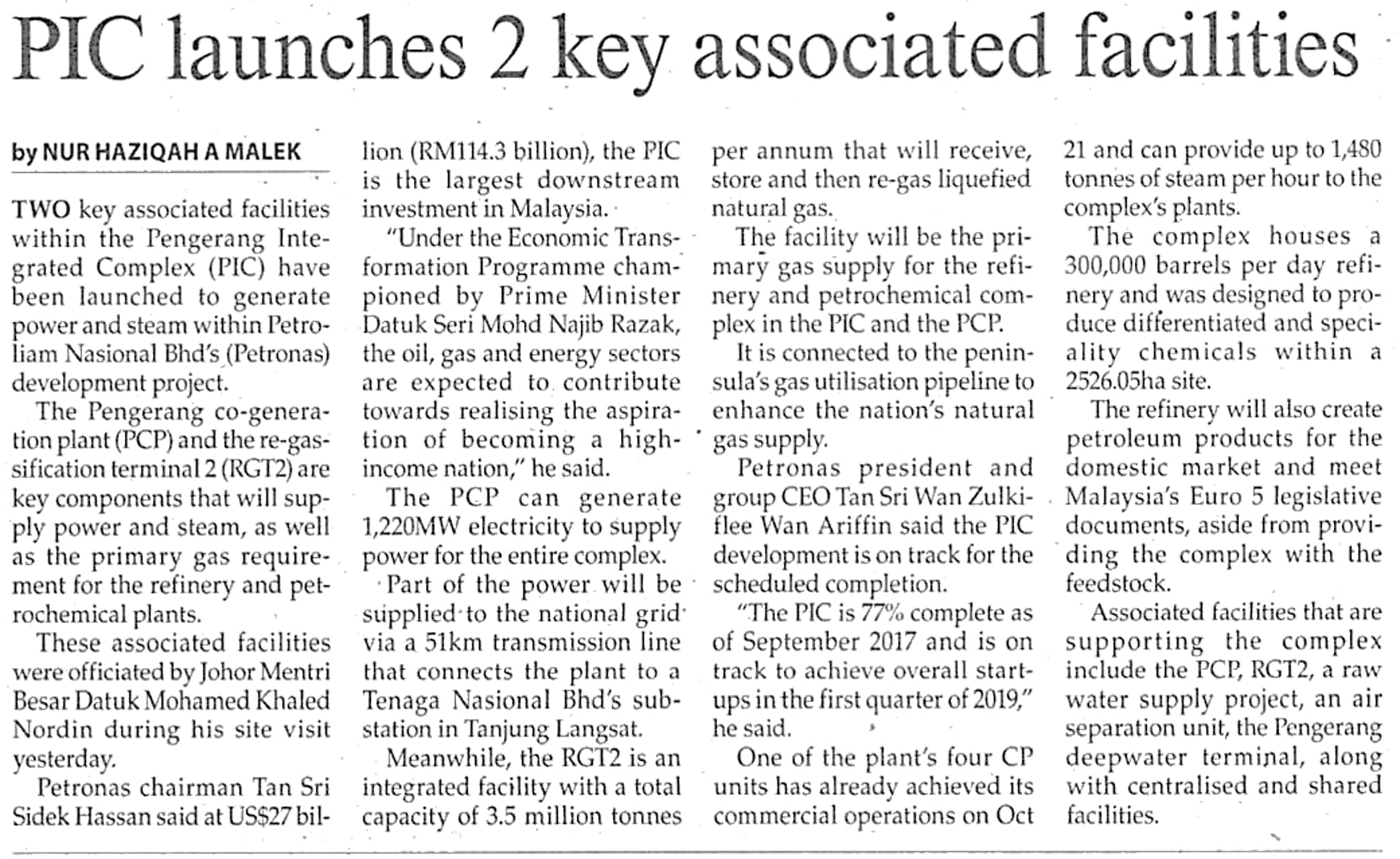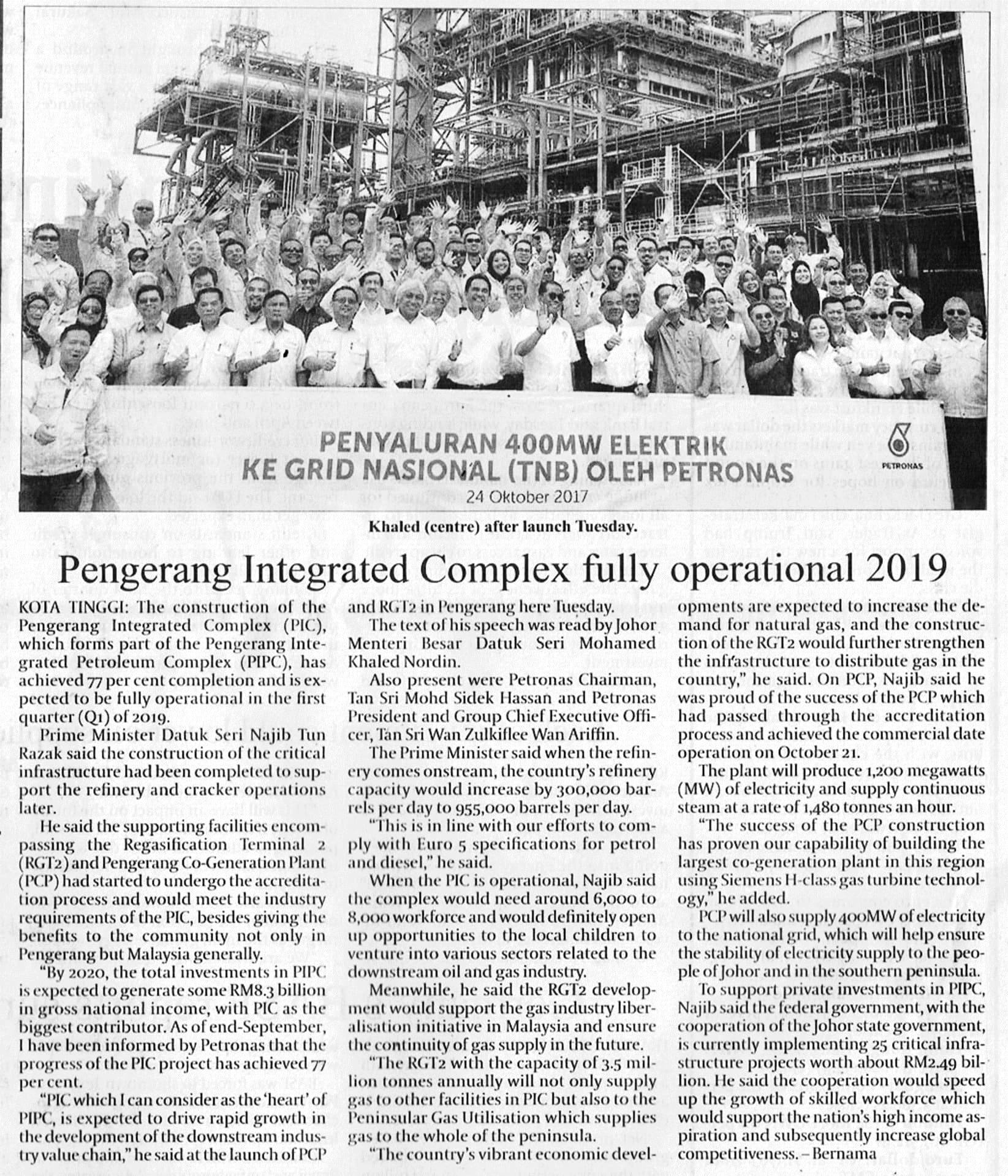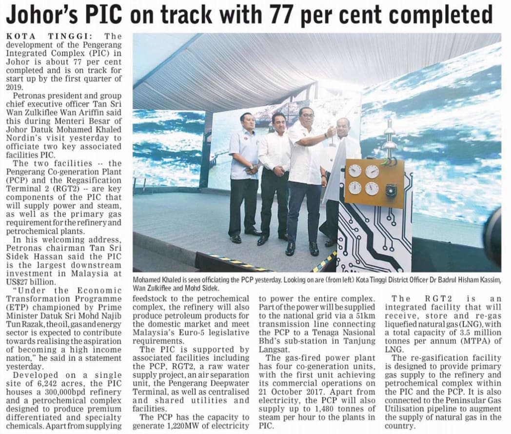 Pengerang Integrated Complex 77pct Complete, to be fully Operational in Q1 2019