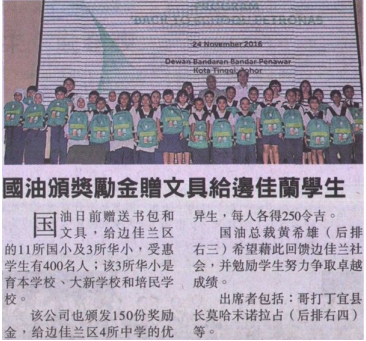 PETRONAS Gives Pocket Money and Stationary to Pengerang Students29 · Nov · 2016 - Sin Chew Daily