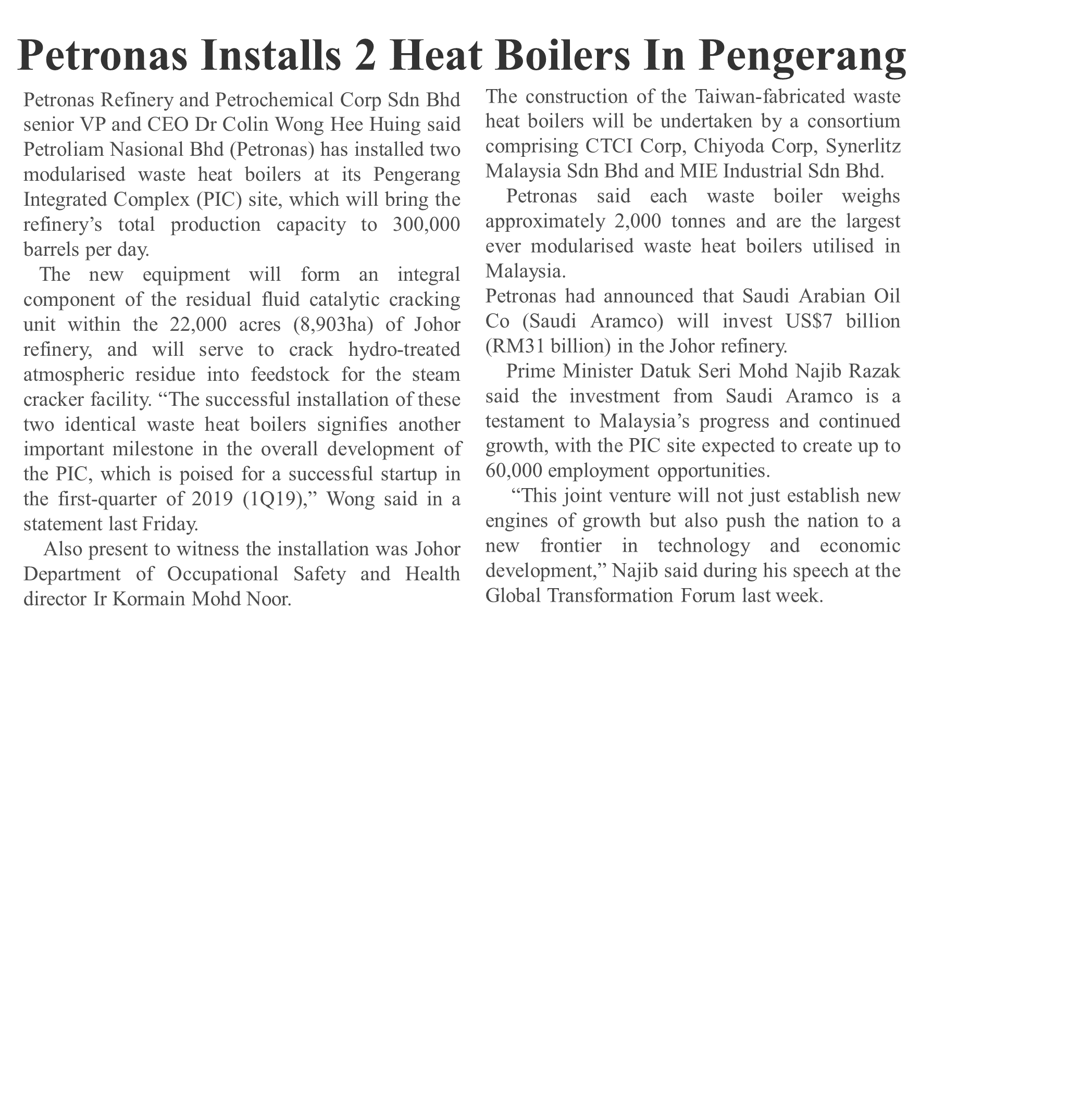 Petronas Installs 2 Heat Boilers in Pengerang27 · Mar · 2017 - The Malaysian Reserve