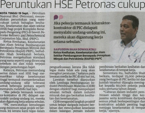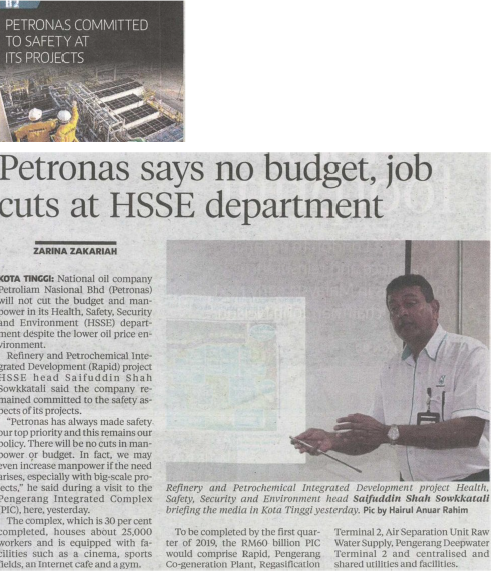 News ClippingPETRONAS Says No Budget Jon Cuts at HSSE Department