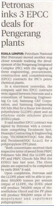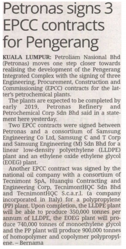 PETRONAS Signs 3 EPCC Contracts for Pengerang