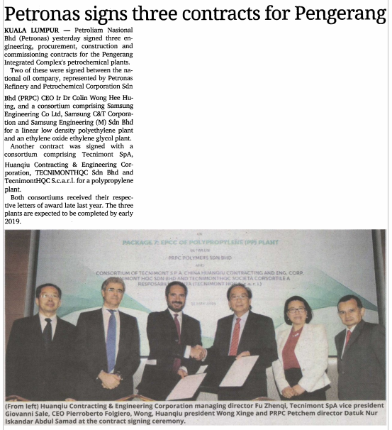 PETRONAS Signs 3 EPCC Contracts for Pengerang Petrochemical Plants
