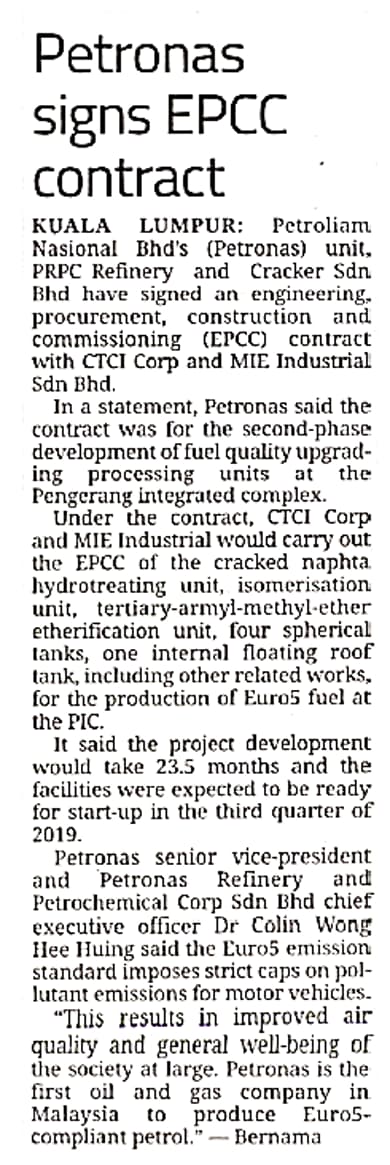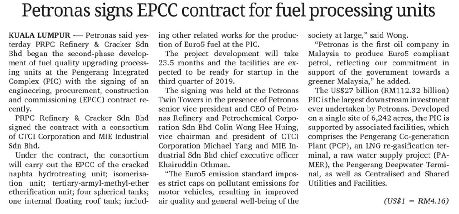 Petronas Signs EPCC Contract for Fuel Processing Units