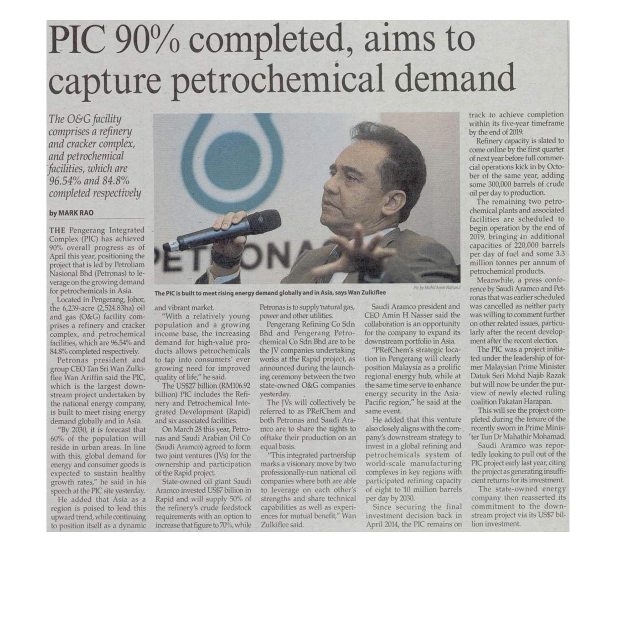 PIC 90percent completed, aims to capture petrochemical demand16 · May · 2018 - The Malaysian Reserve