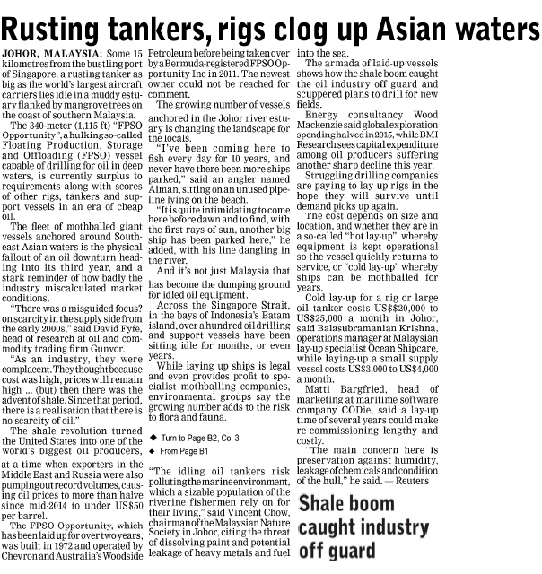 Rusting Tankers, Rigs Clog Up Asian Waters23 · Sep · 2016 - Borneo Post Sarawak