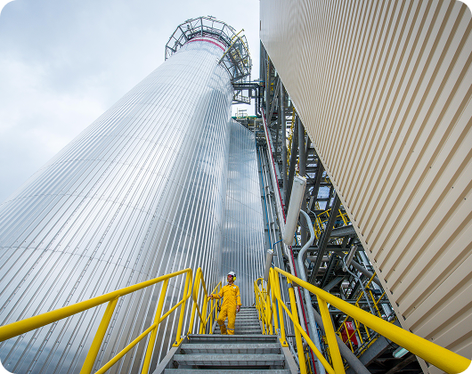 The boilers convert carbon monoxide in flue gases into carbon dioxide and use the heat generated to transform waste heat into steam for process heating and to power turbines. In doing so, they cut down CO2 emissions by about 1.3 million tonnes a year, one of the largest contributors to Scope 1 emission reduction in PIC. Treated flue gases are safely released to the atmosphere. The steam is supplied to steam systems at the Refinery and Steam Cracker plants.